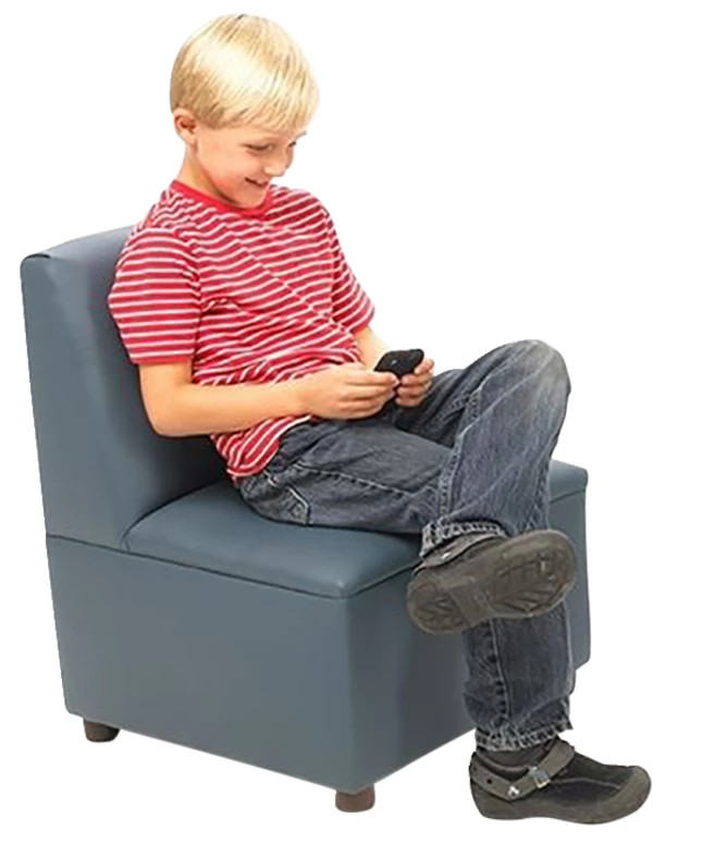 Our new casual chair provides comfortable seating in a modern, compact design. Upholstered in polyurethane, it is PVC-free. Available in 6 colors and measures 20 W x 20 D x 26 H inches. Seat height 13-1/2 inches. Lifetime lifetime warranty. Ages 4 and up.