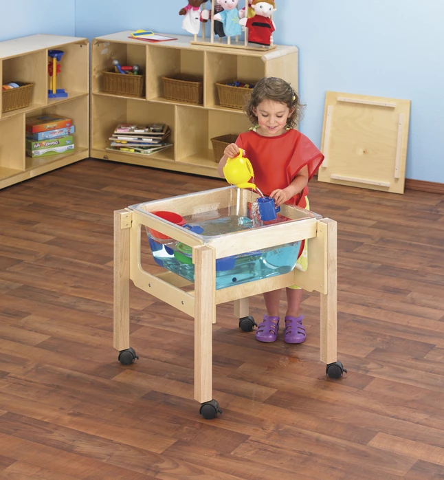 - Casters seamlessly move toddler water table with ease to new location and lock down for safety