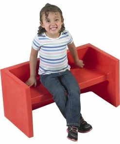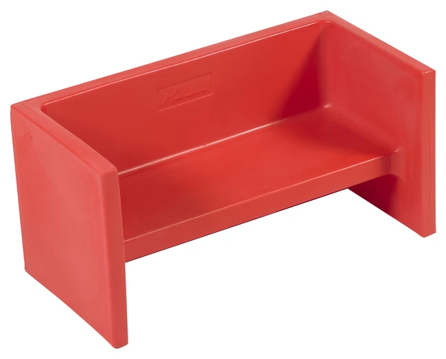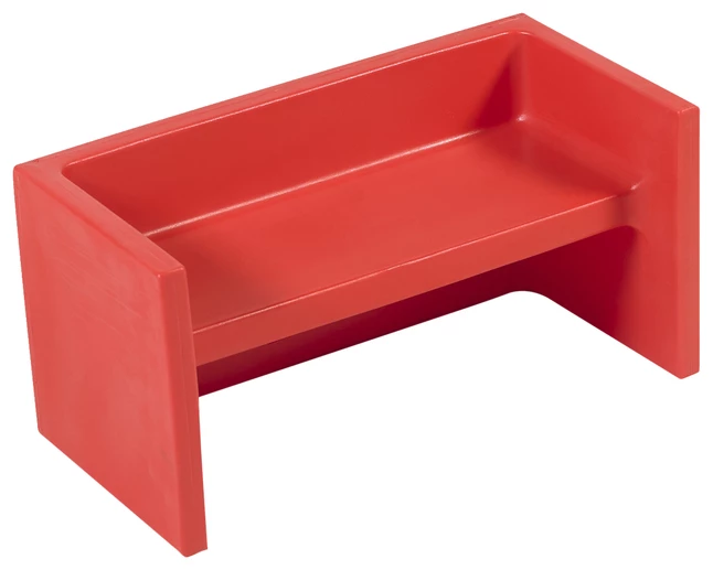 Discover the hidden versatility! This bright colored Adapta-Bench has three uses in one. First use it as a sofa, then flip it over and use it as a table or a seat for adults. Manufactured from durable nontoxic recyclable plastic this lightweight bench can be used indoors or outdoors. Dimensions: 30 W x 15 D x 15 H inches.