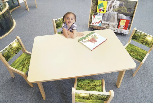 A child’s chair like no other! The exclusive design evokes a woodland summer day with captivating realism. Create a season-themed activity area, reading space, or entire room environment!